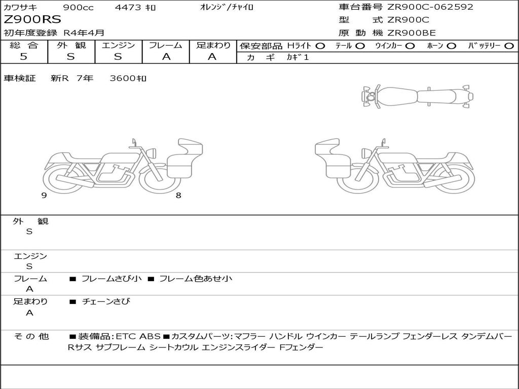 | Номер рамы / VIN | ZR900C-062592 |