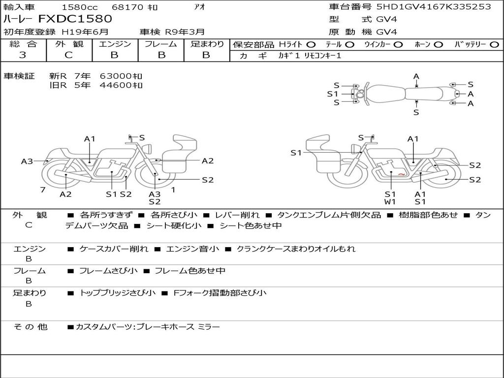 | Номер рамы / VIN | 5HD1GV4167K335253 |