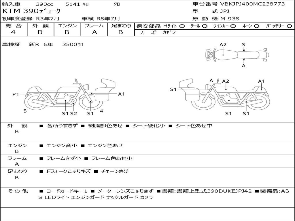 | Номер рамы / VIN | VBKJPJ400MC238773 |