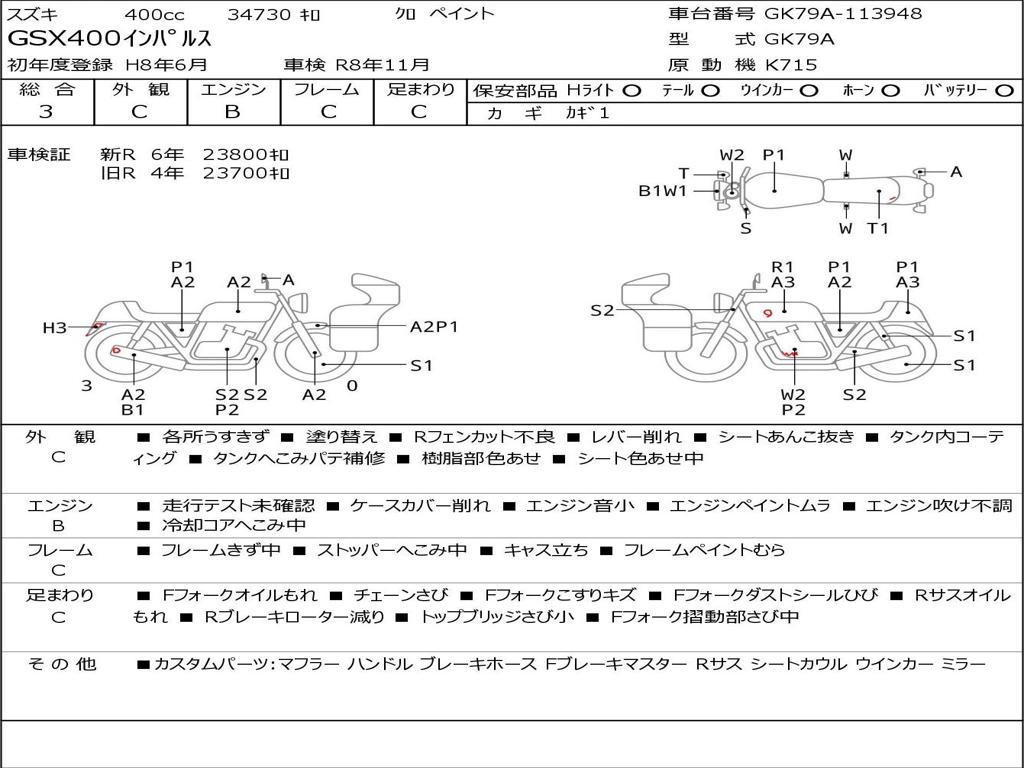 | Номер рамы / VIN | GK79A-113948 |