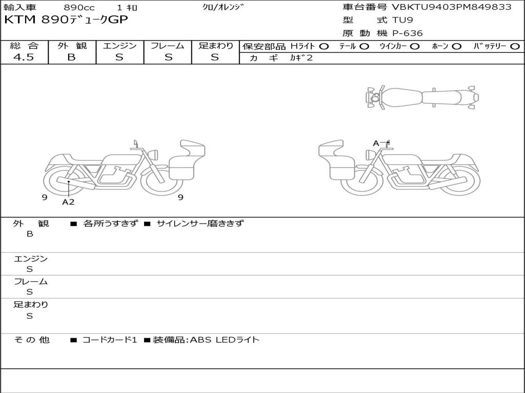| Номер рамы / VIN | VBKTU9403PM849833 |