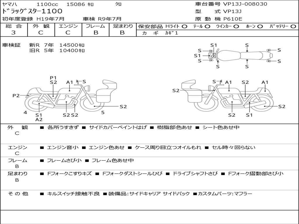 | Номер рамы / VIN | VP13J-008030 |