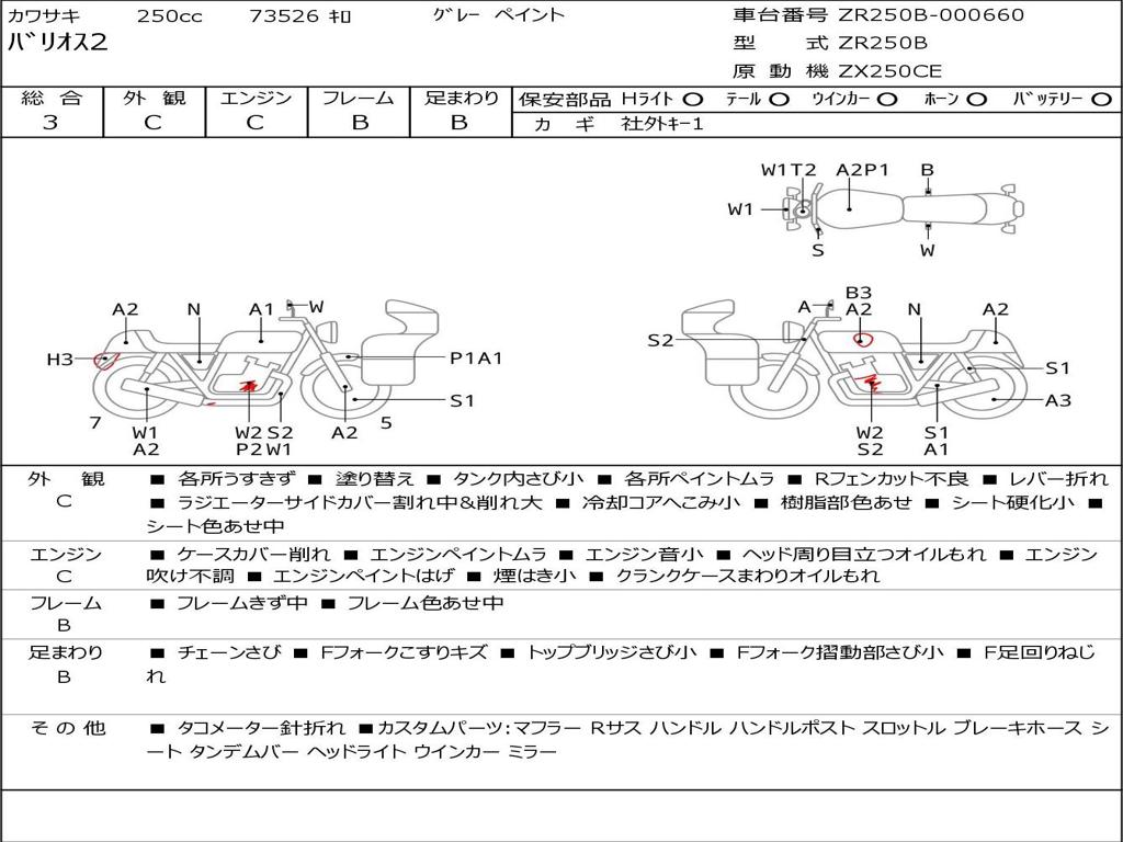 | Номер рамы / VIN | ZR250B-000660 |