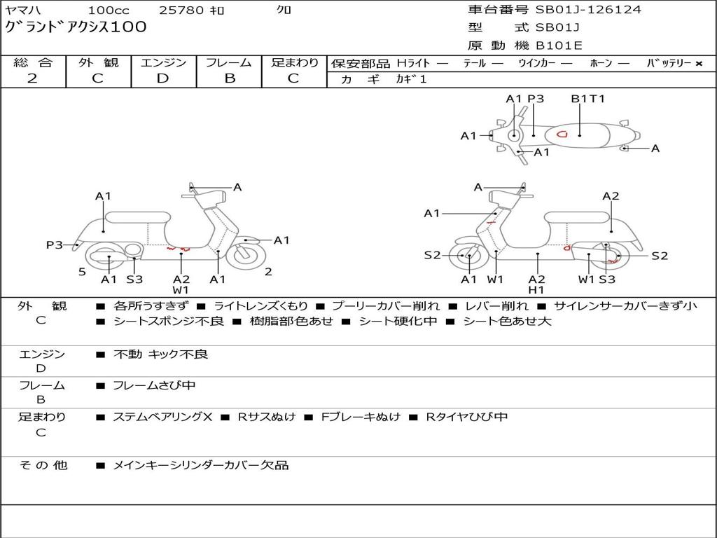 | Номер рамы / VIN | SB01J-126124 |