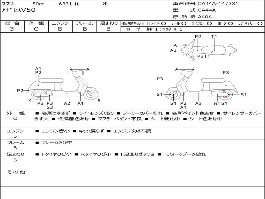 | Номер рамы / VIN | CA44A-147331 |