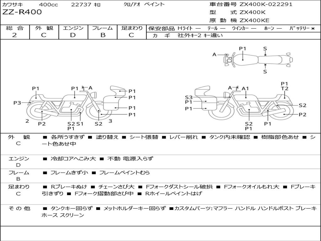 | Номер рамы / VIN | ZX400K-022291 |