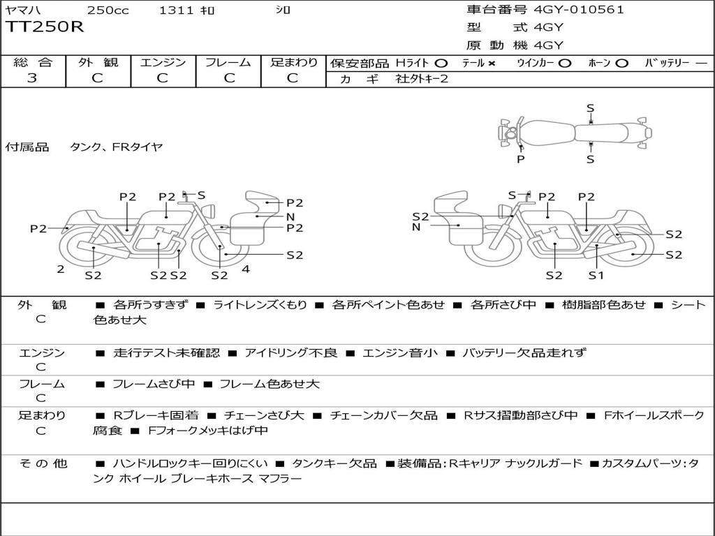 | Номер рамы / VIN | 4GY-010561 |