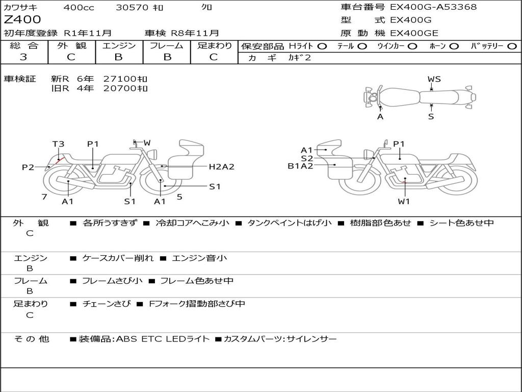 | Номер рамы / VIN | EX400G-A53368 |