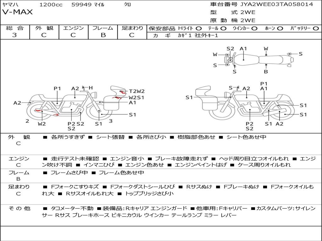 | Номер рамы / VIN | JYA2WEE03TA058014 |