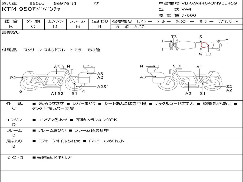 | Номер рамы / VIN | VBKVA44043M903459 |