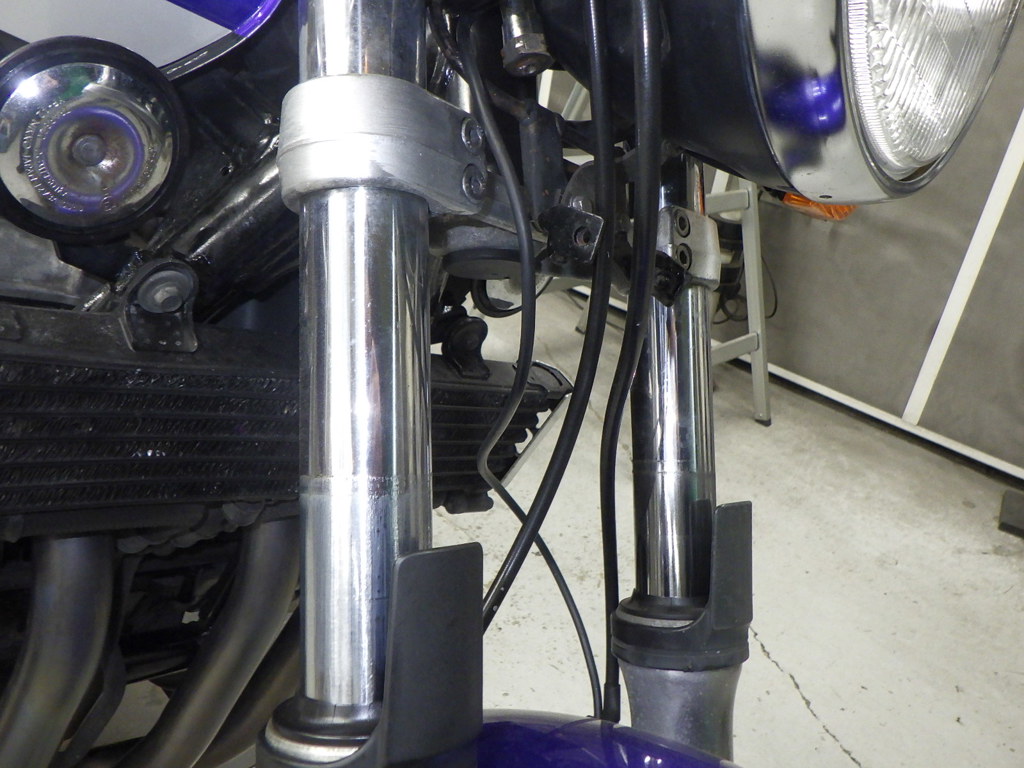 | внешняя часть вилки | следы коррозии <много>, полирован., потек масла <много>, выцветание краски |