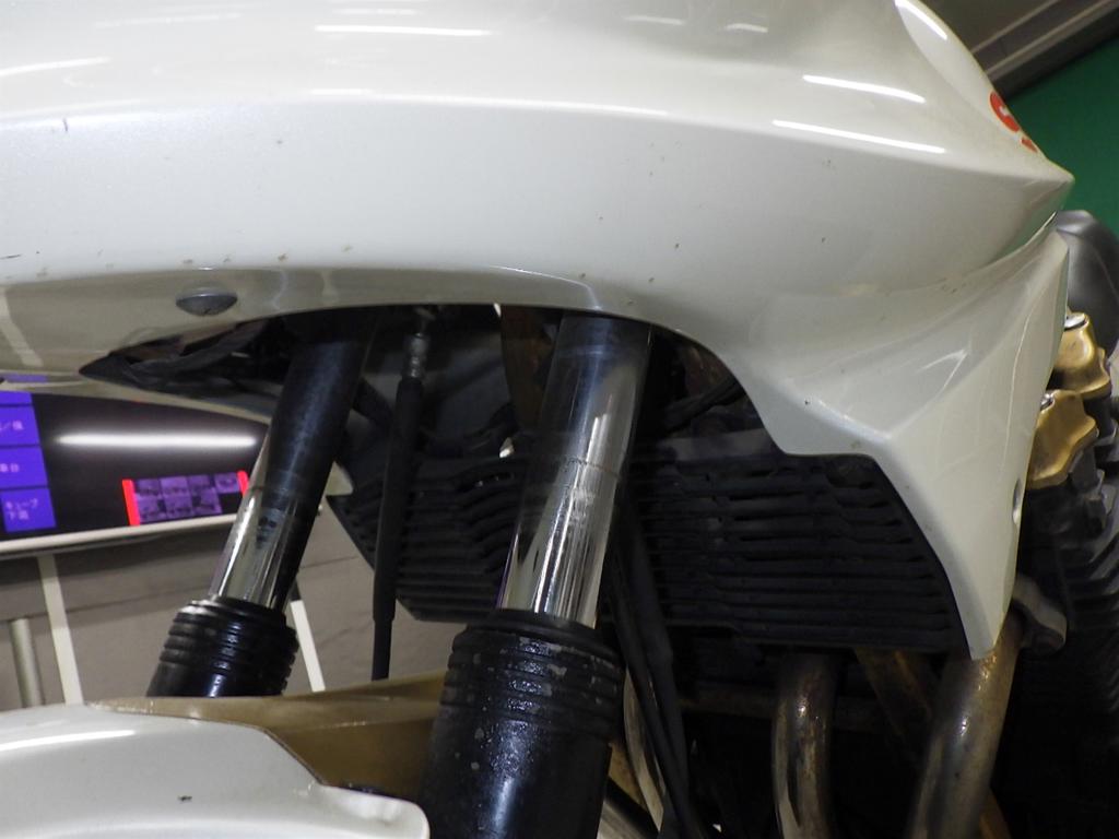 | внешняя часть вилки | царапины, следы коррозии <много>, износ(потертость) краски, потек масла, неисправен сальник |