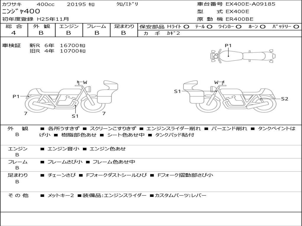 | Номер рамы / VIN | EX400E-A09185 |