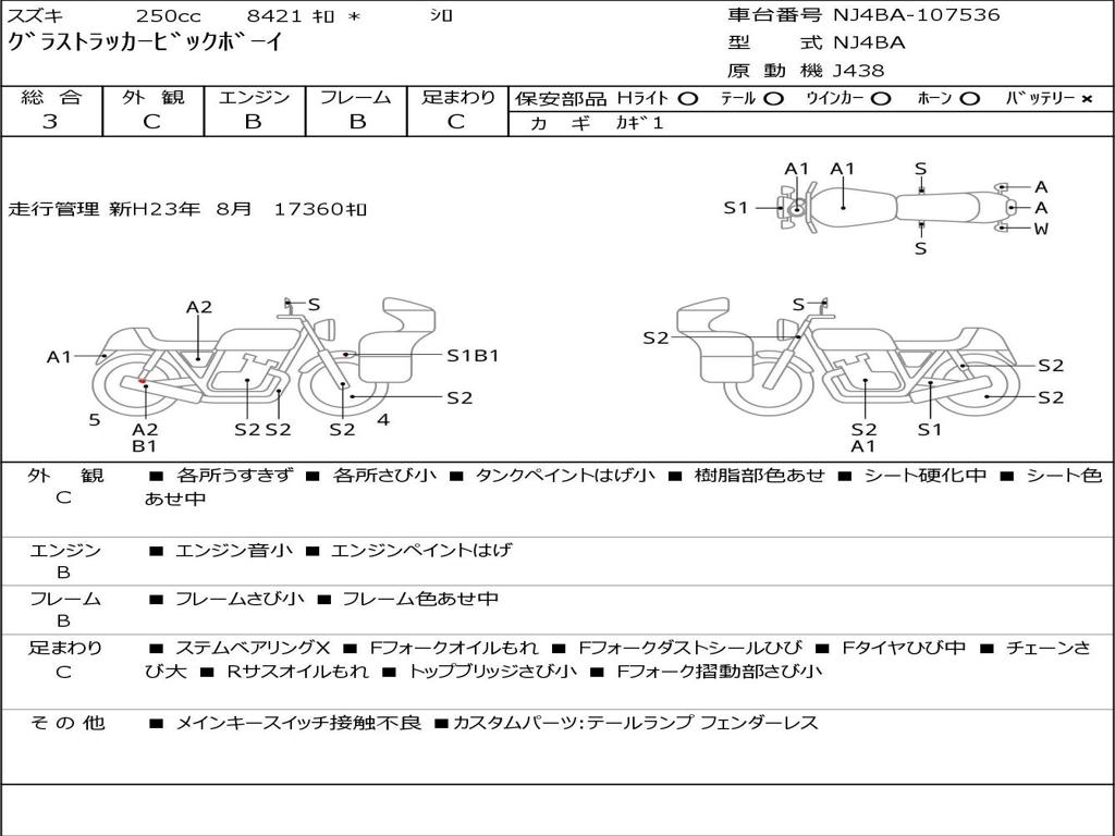 | Номер рамы / VIN | NJ4BA-107536 |