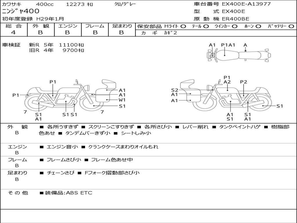 | Номер рамы / VIN | EX400E-A13977 |