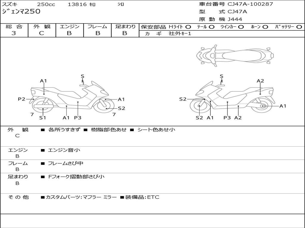 | Номер рамы / VIN | CJ47A-100287 |