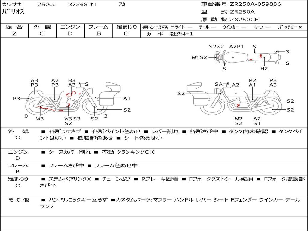 | Номер рамы / VIN | ZR250A-059886 |