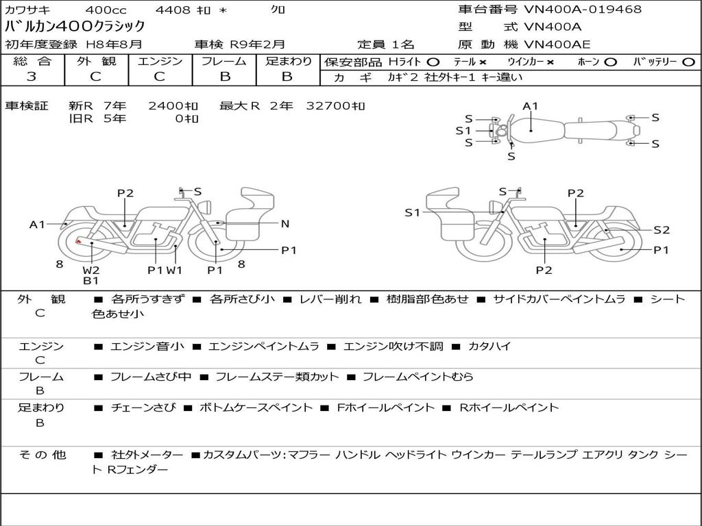 | Номер рамы / VIN | VN400A-019468 |