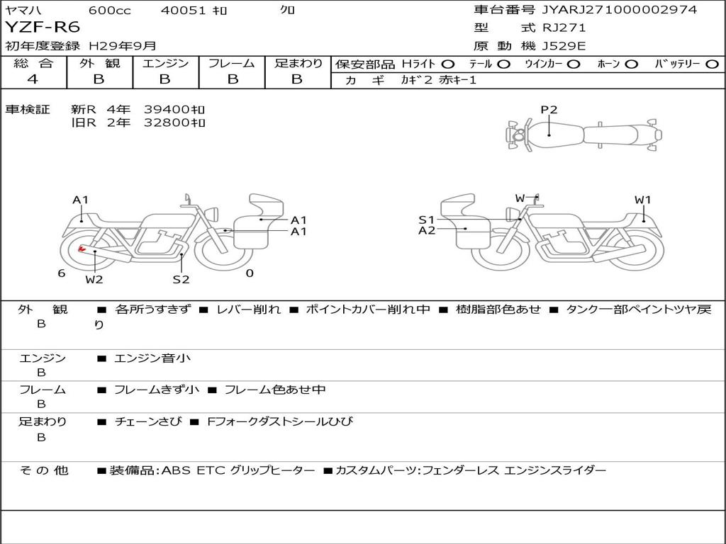| Номер рамы / VIN | JYARJ271000002974 |