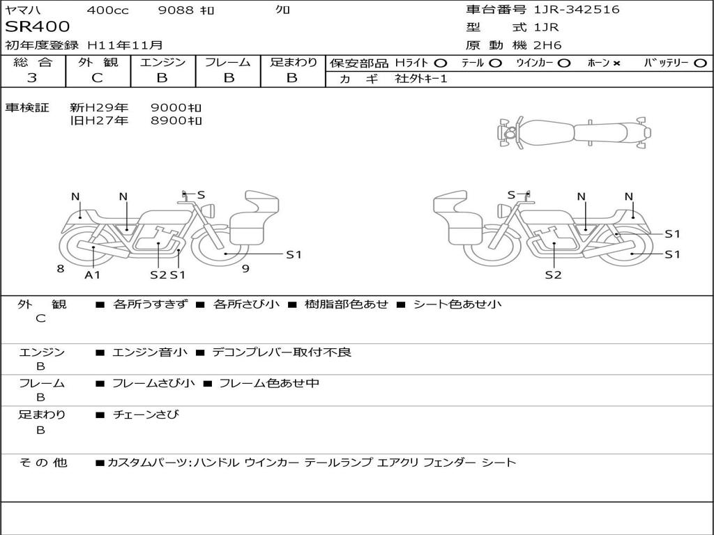 | Номер рамы / VIN | 1JR-342516 |