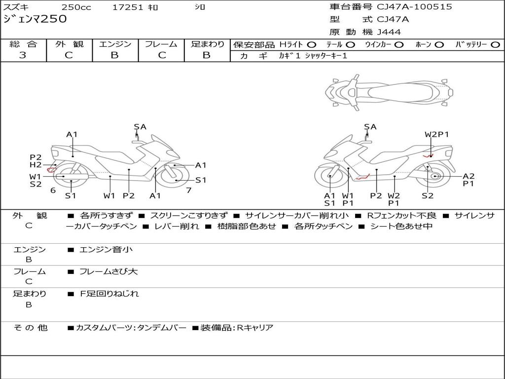| Номер рамы / VIN | CJ47A-100515 |