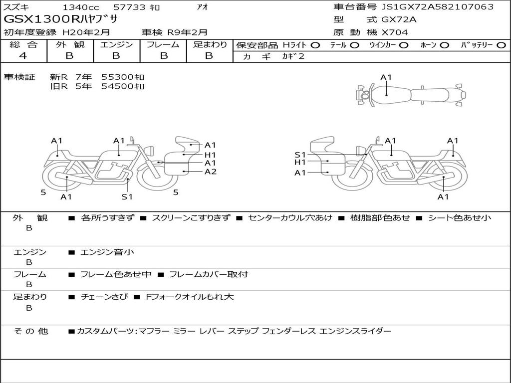 | Номер рамы / VIN | JS1GX72A582107063 |