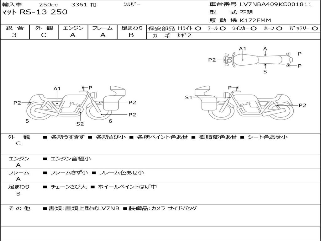 | Номер рамы / VIN | LV7NBA409KC001811 |