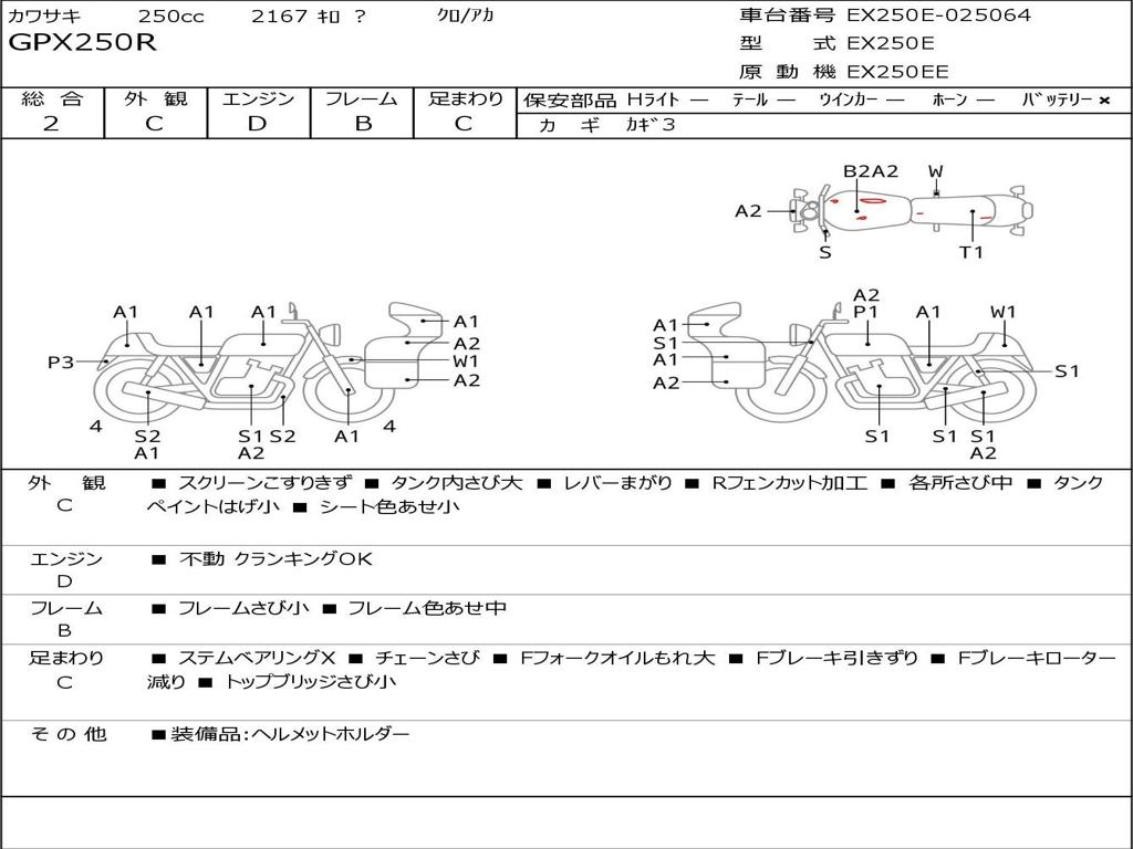 | Номер рамы / VIN | EX250E-025064 |