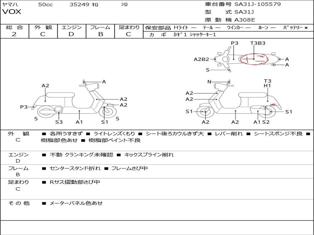 | Номер рамы / VIN | SA31J-105579 |