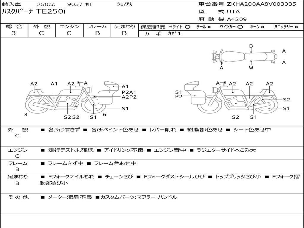 | Номер рамы / VIN | ZKHA200AA8V003035 |