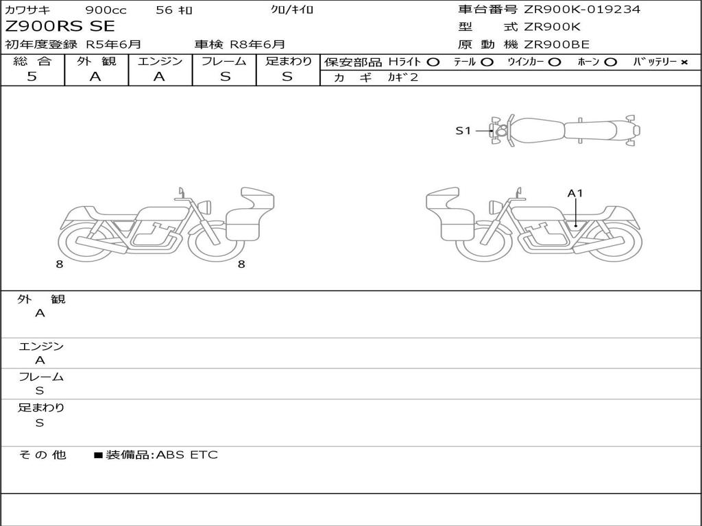 | Номер рамы / VIN | ZR900K-019234 |