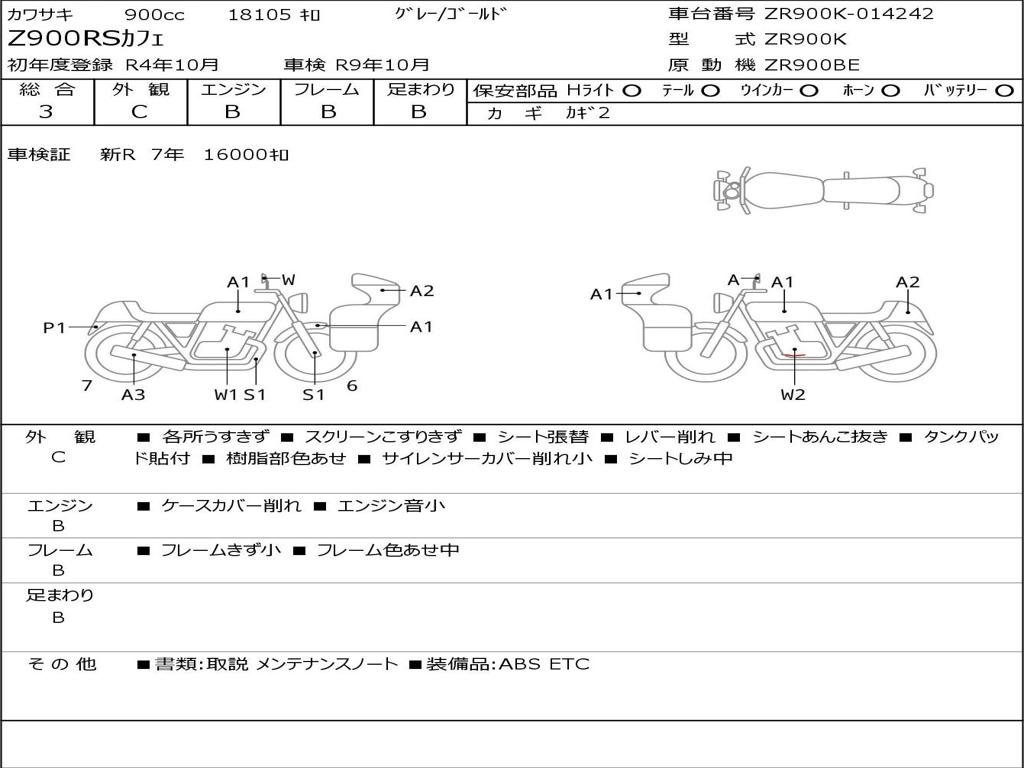 | Номер рамы / VIN | ZR900K-014242 |