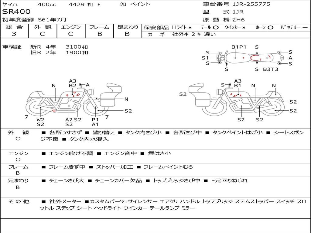 | Номер рамы / VIN | 1JR-255775 |