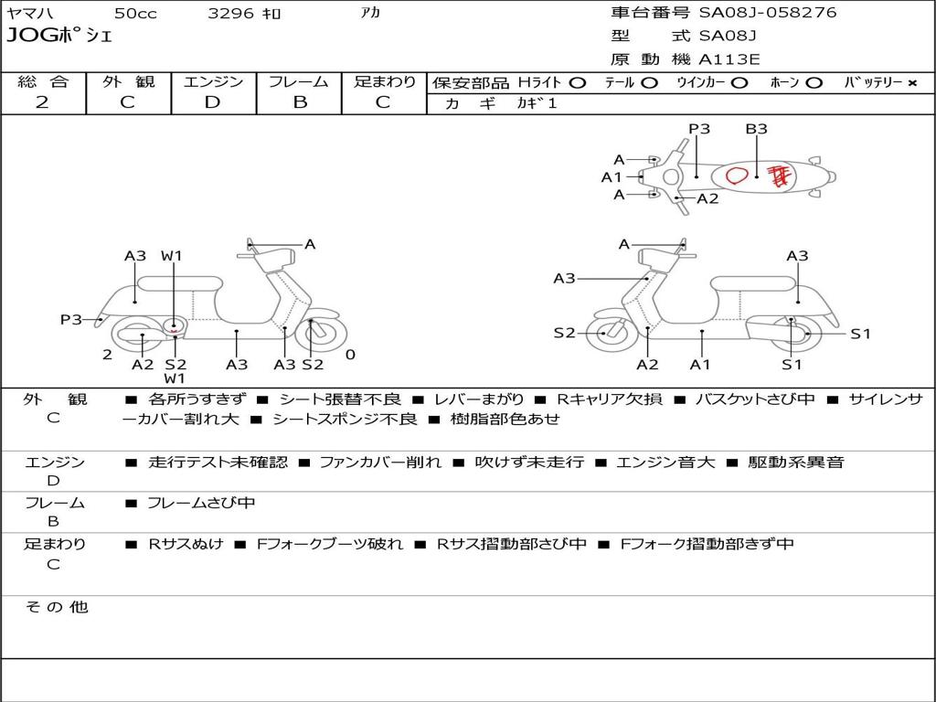 | Номер рамы / VIN | SA08J-058276 |