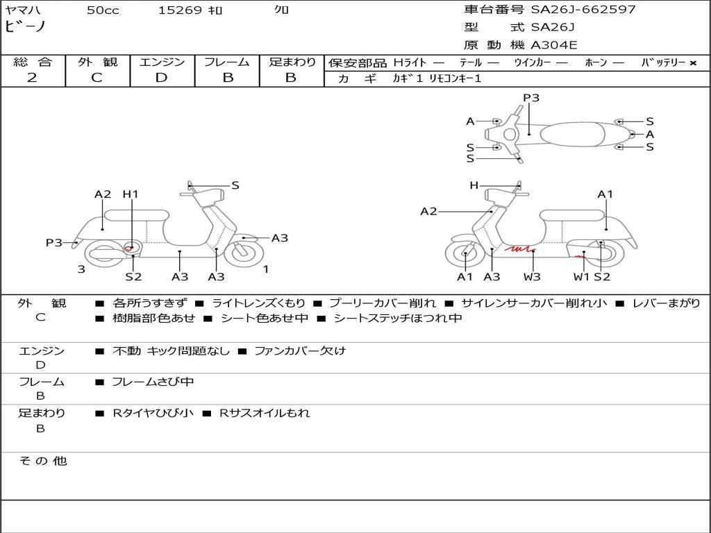 | Номер рамы / VIN | SA26J-662597 |