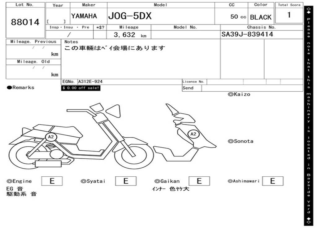 | Номер рамы / VIN | SA39J-839414 |