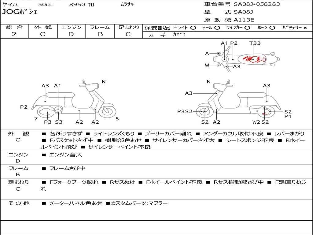 | Номер рамы / VIN | SA08J-058283 |