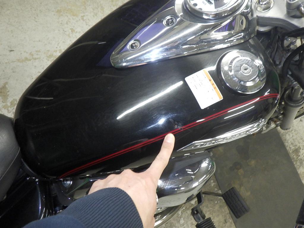 | бензобак | царапины <много>, вмятина <много>, rust paint, потертость краски |