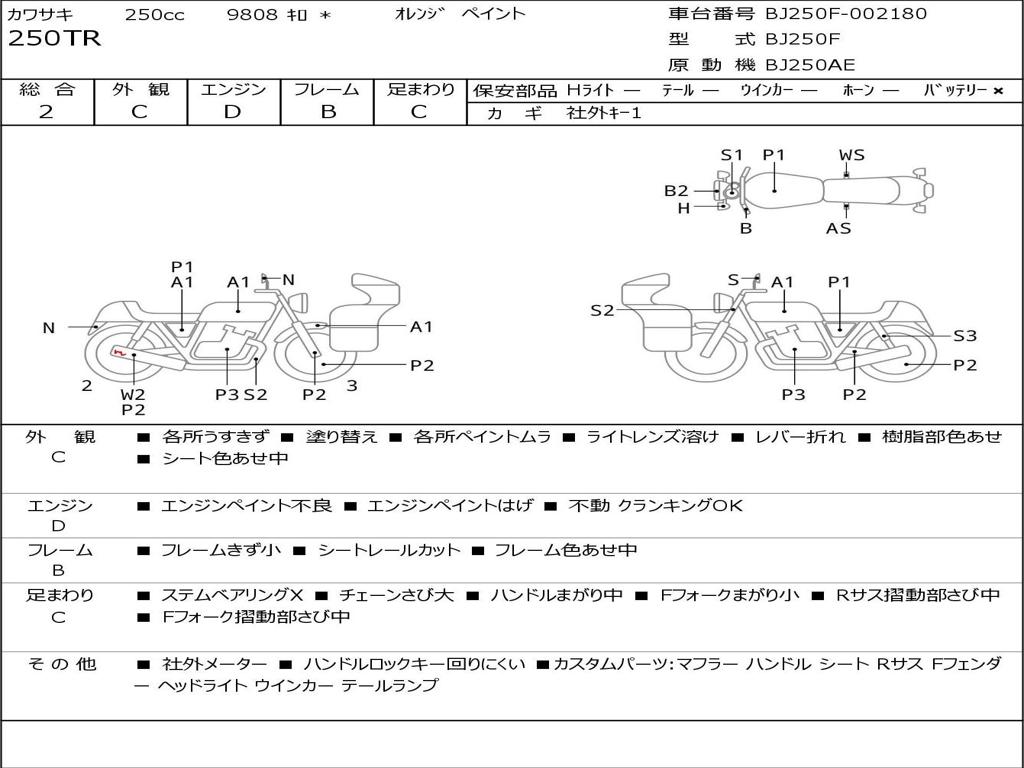 | Номер рамы / VIN | BJ250F-002180 |
