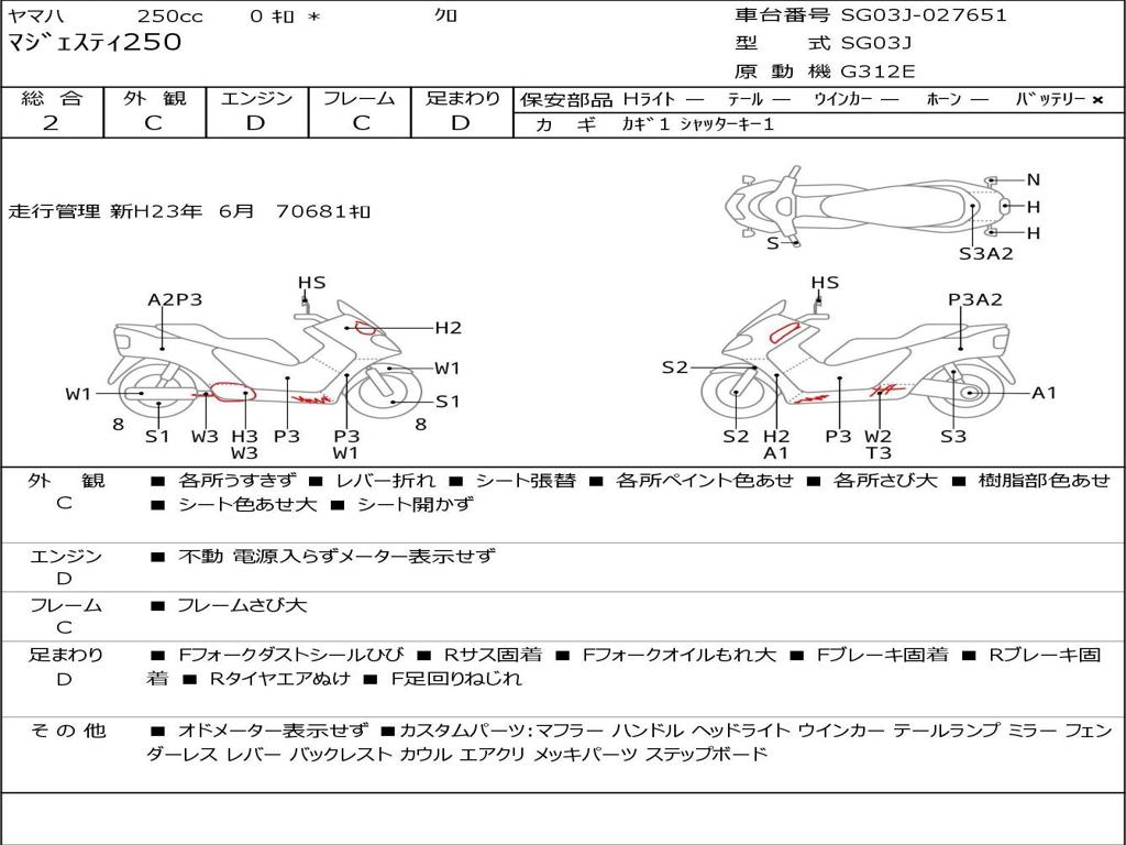 | Номер рамы / VIN | SG03J-027651 |