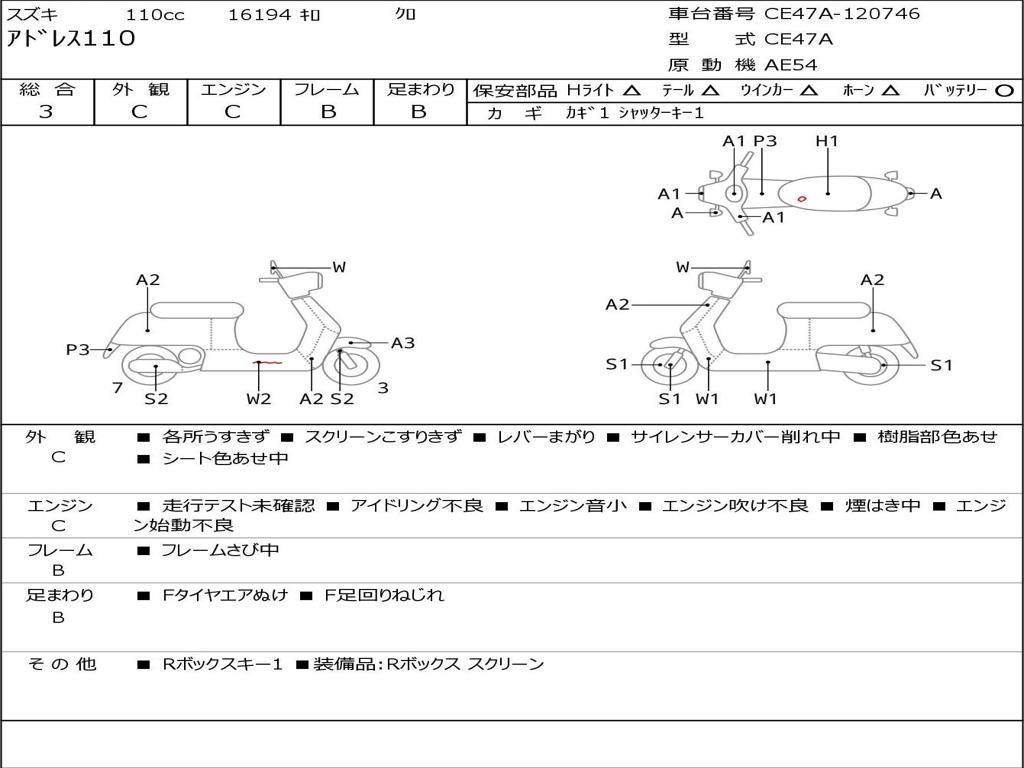 | Номер рамы / VIN | CE47A-120746 |