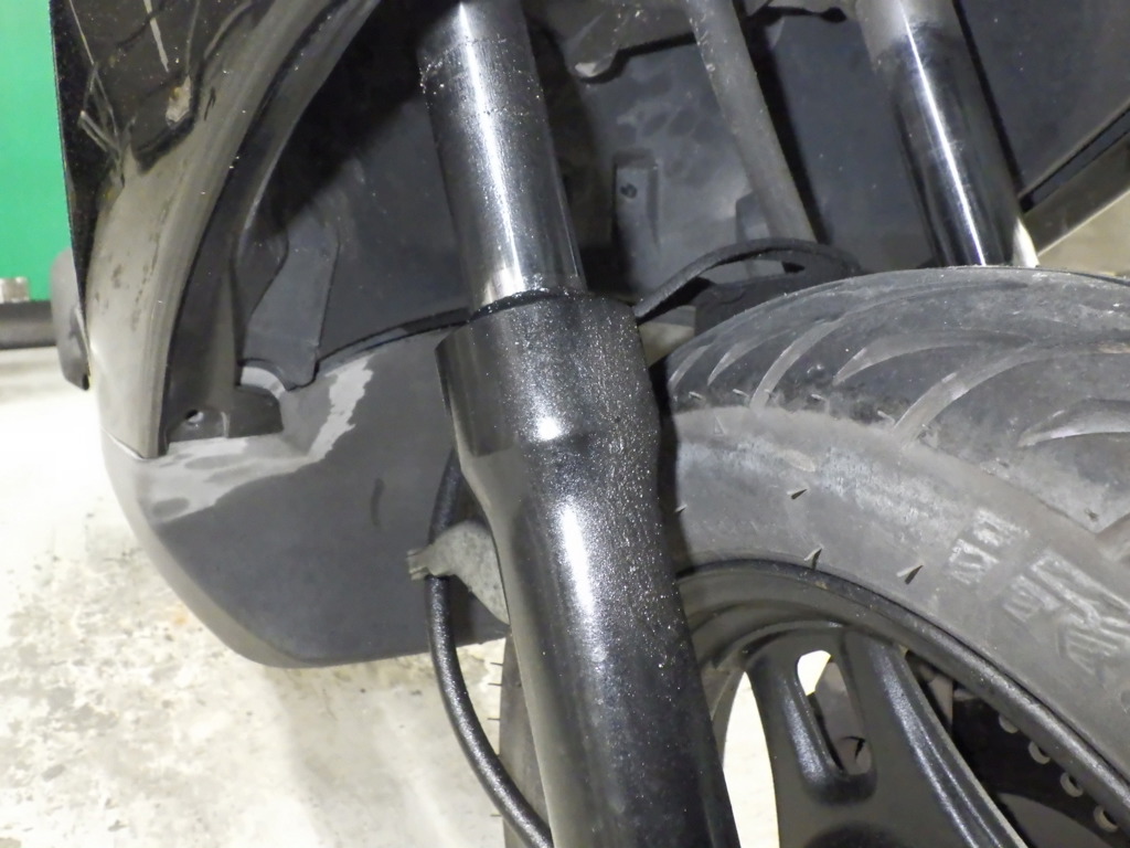 | внешняя часть вилки | царапины, потек масла <много> |