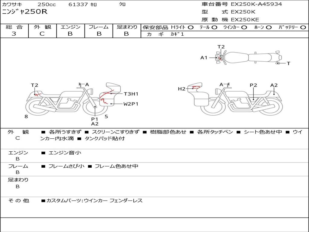 | Номер рамы / VIN | EX250K-A45934 |