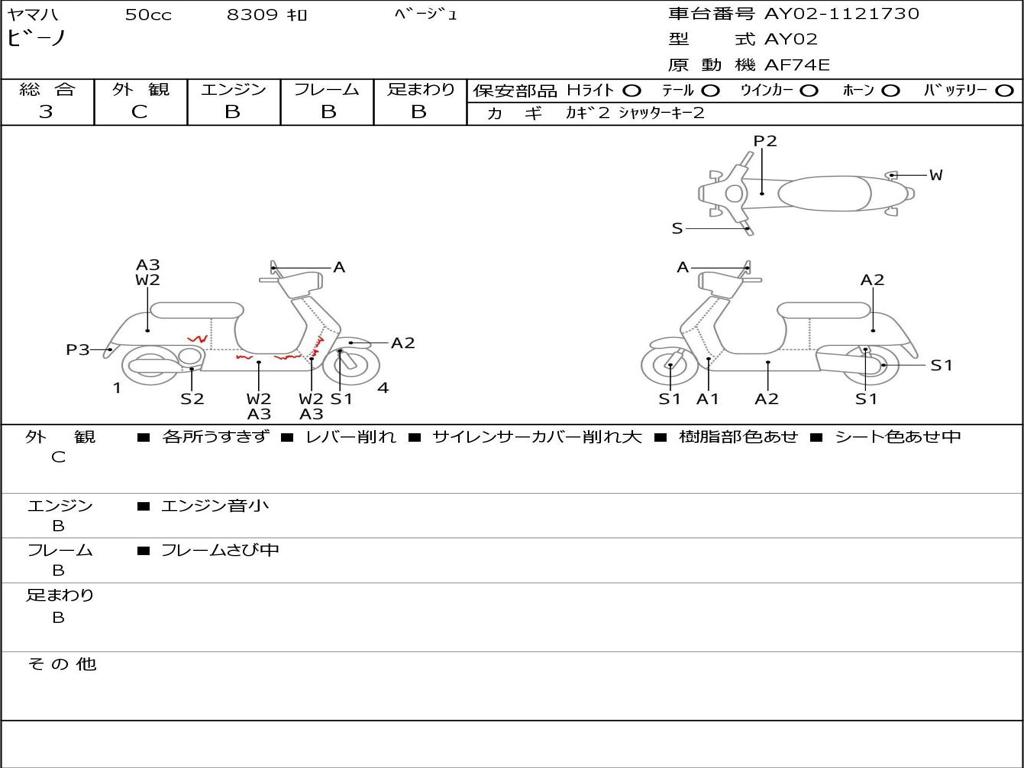 | Номер рамы / VIN | AY02-1121730 |