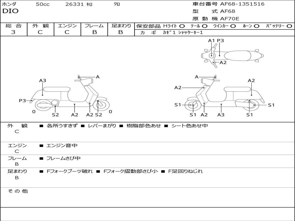 | Номер рамы / VIN | AF68-1351516 |