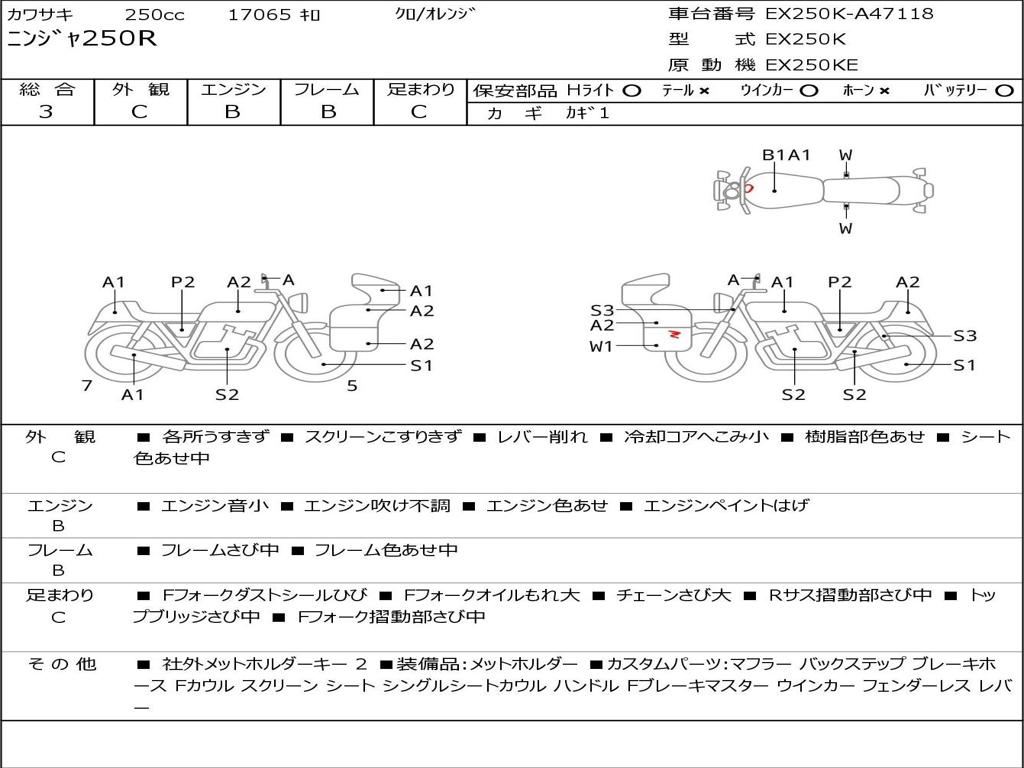 | Номер рамы / VIN | EX250K-A47118 |