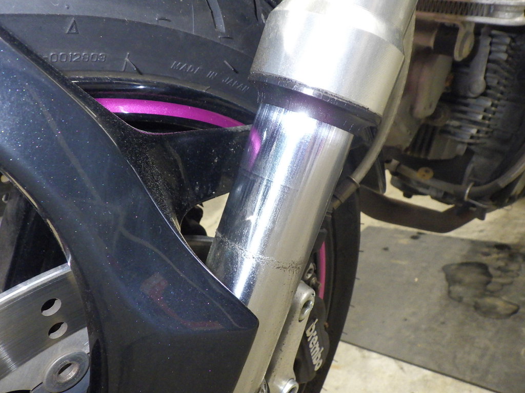 | внешняя часть вилки | следы коррозии <много>, потек масла <много>, неисправен сальник |