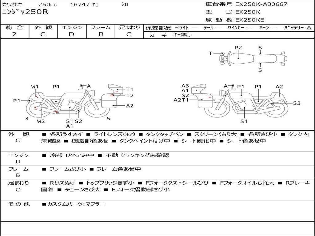 | Номер рамы / VIN | EX250K-A30667 |