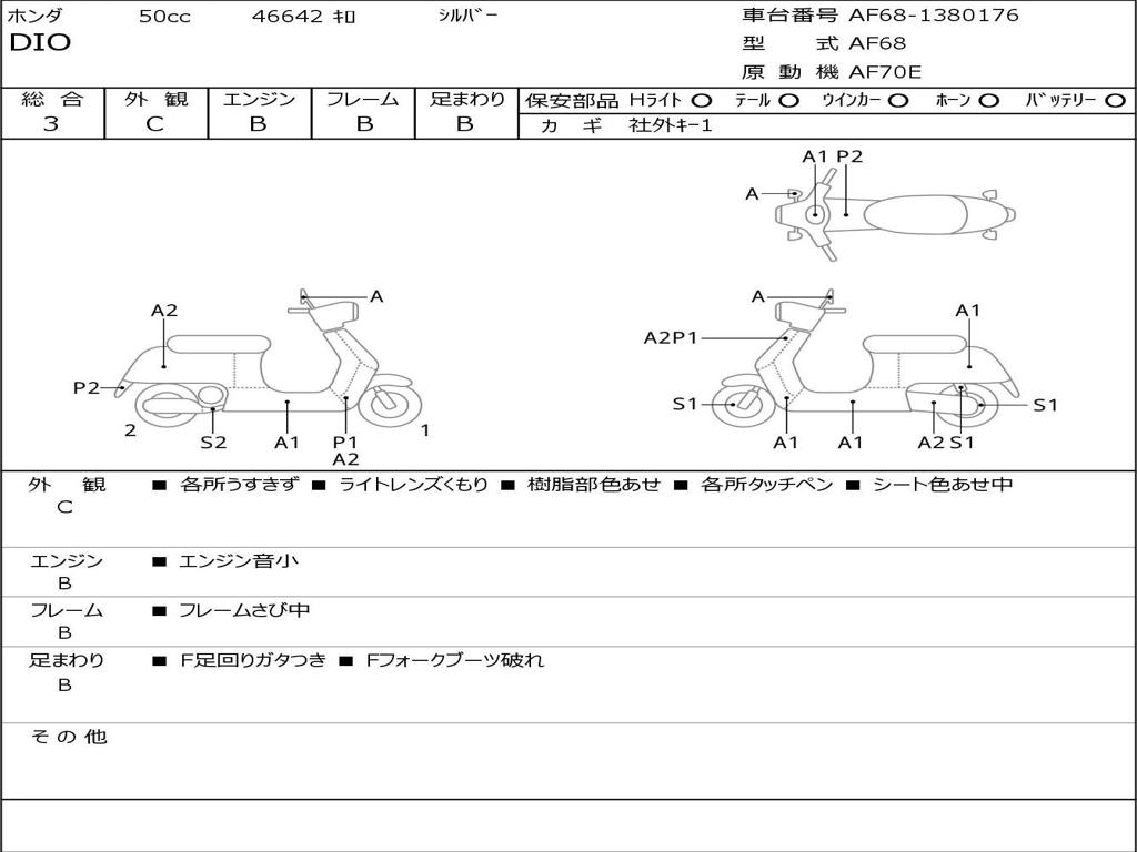 | Номер рамы / VIN | AF68-1380176 |