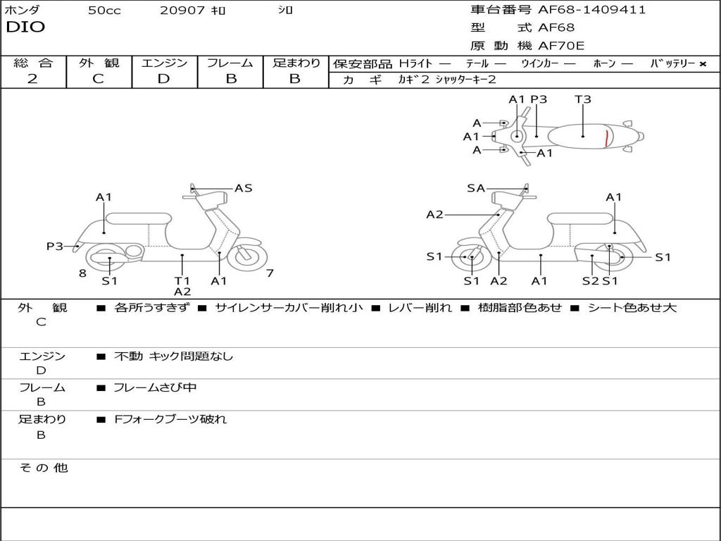 | Номер рамы / VIN | AF68-1409411 |